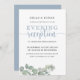 Design d'inspiration rustique pour votre invitation parfaite. Créé à partir d'une aquarelle originale avec eucalyptus doux et une végétation coordonnée. Il suffit de cliquer sur personnaliser et de modifier le texte en fonction de vos propres détails.