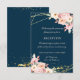 Invitation Réception de mariage Bleu Nuit Floral Doré Rustiqu