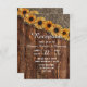Cartes de réception de mariage champêtre aux tournesols avec bois rustique et toile de jute dans un style chic de ferme campagnarde avec une police de caractères à brosse tendance ! ~Consultez ma boutique pour voir la suite de la collection de mariage pour ce design !