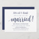 Cette carte d'invitation sur le thème de la fugue amoureuse pour un mariage champêtre bleu marine (vous pouvez personnaliser toutes les couleurs) est parfaite pour votre réception de mariage et votre fête de célébration post-mariage. Ajoutez vos détails dans la même police / lettrage.