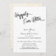Dans ce design festif, j'ai utilisé une police de calligraphie tourbillonnante moderne pour créer une superposition de typographie graphique indiquant "Happily Ever After". Remplissez les espaces vides du modèle avec les détails de votre événement de célébration pour personnaliser le design. Toutes les couches ont été ajoutées séparément et laissées déverrouillées afin que vous puissiez également cliquer pour personnaliser davantage et repositionner le texte ou même changer les tailles ou les polices. Le dos de la carte était recouvert d'un graphique représentant des confettis dorés factices. N'hésitez pas à me contacter pour des demandes spéciales ou pour obtenir de l'aide pour la personnalisation.