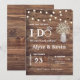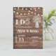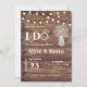 Invitation à une réception de mariage BBQ. Une façon décontractée d'inviter vos proches à votre réception de mariage après une fugue ou une cérémonie privée. Avec un fond en bois de grange, des guirlandes lumineuses et du gypsophile dans un pot Mason.