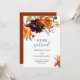 Faire-part de mariage bohème rustique avec invitation de réception comprenant un bouquet floral peint à l'aquarelle avec des tons chauds et terreux d'orange brûlé, de terre cuite et de bordeaux profond ainsi que le message "Nous sommes mariés". Cette élégante invitation de réception avec les riches tons de l'automne est idéale pour une célébration d'automne et est parfaite pour un couple déjà marié qui souhaite célébrer avec sa famille et ses amis après s'être marié en toute intimité.