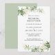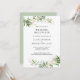 Cette invitation de réception de mariage élégante avec verdure d'olive est parfaite pour votre réception bohème moderne d'été. Elle est conçue avec des feuilles émeraude aquarelle et de couleur sauge, des touches de botanique dorée et une typographie vintage noire simple. Tous ces éléments se combinent pour un sentiment bohème magnifique.