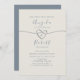 Célébrez votre amour avec ce faire-part élégant de réception de mariage bleu poussiéreux, doté d'une mise en page minimaliste, de polices de caractères script romantiques et d'un symbole de cœur en corde argentée délicat. Avec un fond neutre doux et une typographie intemporelle, ce design est parfait pour les célébrations post-fuite, les mariages modernes ou les rassemblements intimes. Une façon raffinée de dire « Nous avons uni nos vies ! » - idéal pour les couples qui cherchent un carton d'invitation de réception propre et sincère.