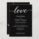 Simple, motif noir et blanc élégant avec un script calligraphique moderne "Amour". Personnalisez cette invitation de réception de mariage pour une fugue amoureuse avec les noms des mariés et tous les détails de la fête sur la fugue amoureuse et la réception de mariage. Incluez un site web de mariage. Cette conception de mise en page chic et élégante est facile à personnaliser.