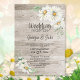 Invitez vos amis et vos proches à votre mariage avec cette invitation de réception de mariage en bois de grange rustique avec des marguerites blanches. Cette invitation est parfaite pour les couples qui ont choisi de se marier dans une cérémonie privée et souhaitent partager leur joie avec leurs amis et leurs proches.