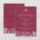 La suite d'invitation comprend des dessins floraux et de feuillage dessinés à la main en blanc ivoire sur un fond en bois rustique élégant moderne vintage rouge marsala Bourgogne.