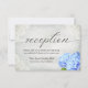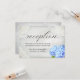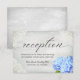 Cartes de réception de mariage en dentelle blanche et fleurs d'hortensia bleu vintage.