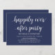 Fête de pour toujours heureux, carte d'invitation de mariage en fuite. Cette carte d'invitation sur le thème du mariage en fuite bleu marine rustique (vous pouvez personnaliser toutes les couleurs) est parfaite pour votre réception de mariage et votre fête de célébration post-mariage. Ajoutez vos détails dans la police / lettrage correspondant.