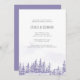 Invitation à la réception de mariage d'hiver uniquement avec un design aquarelle panoramique dans des tons de lavande et de gris. La scène de neige présente un paysage romantique de montagne avec des pins, des congères et une légère tempête de neige. Tout le texte est modifiable, y compris l'introduction "Rejoignez-nous dans les montagnes". Si vous souhaitez des produits assortis, veuillez parcourir ma collection Forêt Hivernale.