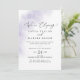 Cette invitation de réception de mariage intime en lavis d'aquarelle violette est parfaite pour une fête moderne après un mariage intime. Le design simple et classique présente une touche de couleur pastel lavande violette avec un style élégant minimaliste. Les cartes de RSVP sont vendues séparément, ou vous pouvez ajouter les informations de RSVP au verso de la carte.