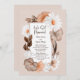 Une invitation à une soirée après mariage floral automnal bohème rustique avec des fleurs et des feuilles d'automne. Parfait pour les couples qui ont choisi de se marier lors d'une cérémonie privée et de célébrer avec des amis et des proches par la suite.