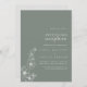 Cette invitation de réception de mariage floral de destination boho vert est parfaite pour une fête rustique après l'élopement. Le design présente des fleurs et des fleurs de pommier aquarelles sur fond vert.