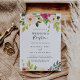 Cette invitation de réception de mariage floral rose blush de verdure est parfaite pour une simple fête post-élopement. Le design présente de belles pivoines roses, blush et jaunes illustrées et peintes à la main avec un feuillage vert.