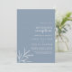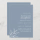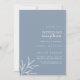 Cette invitation de réception de mariage formelle minimale bleu poussiéreux est parfaite pour une fête rustique après l'élopement. Le design présente des herbes sauvages aquarelles sur un fond bleu poussiéreux.