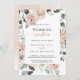 Cette invitation de réception de mariage à la rose pâle géométrique classique est parfaite pour une fête rustique après une fugue amoureuse. Le design présente d'élégantes roses poussiéreuses aquarelles et du feuillage vert, soigneusement assemblés en de beaux bouquets, ornant un cadre géométrique charmant.