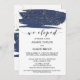 Cette carte d'invitation de réception de mariage intime aquarelle bleu marine et or est parfaite pour une fête de mariage intime élégante. Ce design abstrait de nuit étoilée présente un pinceau dramatique d'aquarelle bleu marine surmonté d'un beau faux éclat doré. Les cartes de RSVP sont vendues séparément.