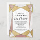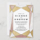 Cette carte de réception de mariage intime à motif géométrique et diamant est parfaite pour une fête moderne après l'élopement. Le design présente un motif géométrique en hexagone avec paillettes dorées fausses, feuille de rose doré faux et texture de marbre factice qui décore les espaces dans le motif. Les cartes de RSVP sont vendues séparément.