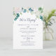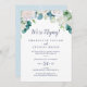 Cette carte de réception de mariage intime aux fleurs blanches classiques est parfaite pour une fête post-mariage printanière. Le design floral élégant présente des roses, des pivoines et des chrysanthèmes ivoire et blancs doux, avec des touches de fleurs de peinture aquarelle bleue pervenche et du feuillage vert. Les cartes de RSVP sont vendues séparément.
