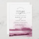 Cette invitation de réception de mariage moderne aquarelle rouge est parfaite pour une fête de post-fiançailles contemporaine et élégante. La collection de designs minimalistes, classiques et élégants présente des coups de pinceau simples à l'aquarelle dans des tons de bijoux jolis. Les cartes de RSVP sont vendues séparément, ou vous pouvez ajouter les informations de RSVP au verso de la carte.