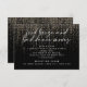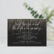 Réception de mariage | Réception de mariage moderne abstraite Après la fête - Champagne audacieux et branché sur une guirlande noire scintillante cascade sur la page, en calligraphie manuscrite est "nourriture alcool et mauvais mouvements de danse" - le reste du texte est simple et propre - tout sur un fond noir. Papeterie de mariage décontractée amusante et audacieuse.