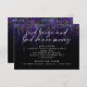 Réception de mariage | Réception moderne abstraite Mariage Après-partie - Un garland violet scintillant audacieux et edgy cascade le long de la page, en calligraphie manuscrite est "nourriture alcool et mauvais mouvements de danse" - le reste du texte est simple et propre - tout sur un fond noir. Papeterie de mariage décontractée amusante edgy.
