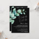 Invitez vos amis et vos proches à votre réception post-mariage avec cette invitation noire aux feuilles d'eucalyptus vert aquarelle pour célébrer votre mariage récent.