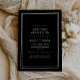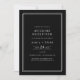 Cette réception de mariage uniquement invitation de l'Avery Suite dispose d'un arrière - plan noir foncé, un cadre double blanc mince et propre sans serif type. Il crée un look moderne et poli, adapté aux lieux de la ville, aux galeries et aux mariages du soir. Les cartes RSVP sont vendues séparément, ou vous pouvez ajouter des informations RSVP au dos de la carte.