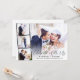 Faire-part de mariage ou d'élopement élégant ou invitation à la réception avec votre photo de mariage superposée à une bande de trois photos carrées plus petites et "Célébrez avec nous" dans un script moderne. Ajoutez vos prénoms, date et lieu de mariage dans une typographie simple. Au verso, personnalisez votre faire-part de mariage et votre invitation à la réception et ajoutez vos noms dans un script ressemblant à une signature.