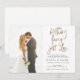 Invitation d'annonce de mariage et de réception uniquement, avec la mention "Rien de fantaisiste, juste de l'amour" dans un script doré amusant. Annoncez à vos amis et à votre famille que vous vous êtes mariés lors d'une cérémonie privée, puis invitez-les à une célébration de réception de mariage. Personnalisez avec vos informations et votre photo.