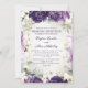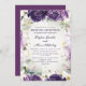 Invitation de réception de mariage élégante et romantique avec de jolies fleurs blanches et violettes peintes à la main et feuilles vert sauge accentuées de paillettes dorées. Contactez-moi pour obtenir de l'aide pour vos personnalisations ou pour demander d'autres produits Zazzle assortis pour votre mariage ou vos événements de mariage.