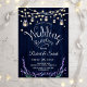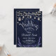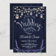 Invitation de réception de mariage. Conception de style rustique avec motif de grange en bois marine, lavande et guirlandes de lumières féériques avec pots Mason.