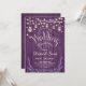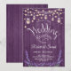 Invitation réception de mariage. Conception de style rustique avec du bois violet, des fleurs de lavande et des guirlandes lumineuses avec des pots Mason.