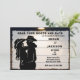 Définissez le ton de votre journée spéciale avec cette invitation de réception de grange pour couple western rustique. Avec un charmant fond en bois qui dégage une élégance rustique, cette invitation est parfaite pour une célébration sur le thème de la grange. La silhouette d'un cowboy et d'une cowgirl ajoute une touche romantique et authentiquement western, ce qui la rend idéale pour les couples qui aiment le style campagnard. Personnalisez le texte pour inclure tous les détails de votre réception, en vous assurant que vos invités sachent qu'ils vont passer un bon moment inoubliable. Que vous organisiez une réunion décontractée ou une soirée western chic, cette invitation allie avec charme et style.