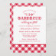 Une invitation festive et élégante à la célébration de réception de mariage pour un événement décontracté de barbecue d'été dans la cour arrière. Le texte comprend "Rejoignez-nous pour une réception de mariage 'I do' Barbecue" en l'honneur d'un couple récemment marié. Couleurs de design rouge et blanc avec accent de motif de toile à carreaux sur la nappe.