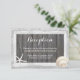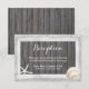Cartes de réception de mariage rustique sur la plage avec coquillages et cadre en bois.