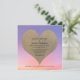 Cette invitation de réception de mariage exceptionnelle présente un coucher de soleil magnifique comme toile de fond pour un cœur de sable qui contient tous les détails de votre réception. Cette invitation unique présente également l'image du sable au verso de l'invitation. Copyright henishouseofpaper