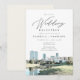 Cette invitation à la réception de mariage présente une peinture à l'aquarelle de la skyline de Fort Worth, au Texas, et une police manuscrite élégante. Modifiez facilement la plupart des textes pour les adapter à votre événement
