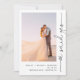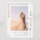 Cette annonce de mariage noir et blanc est un excellent moyen de faire savoir à vos amis et à votre famille que vous vous êtes enfuis, que vous avez eu une cérémonie secrète ou un mariage intime, et que vous voulez célébrer avec eux ! La face avant de la carte est conçue pour mettre en valeur votre photo préférée en orientation verticale, avec les mots "Nous avons dit oui" écrits à la main sur la droite pour un design tendance, moderne et élégant. Vos noms, date et lieu de mariage apparaissent en bas dans une police sans serif moderne et élégante. Le verso de la carte vous permet de saisir votre date et lieu de mariage, et de personnaliser la carte avec toutes les informations pertinentes sur la réception de mariage. Il comporte également une deuxième photo de mariage, cette fois une image horizontale. Il s'agit d'un modèle de conception, très facile à personnaliser pour répondre à vos besoins. Copyright Anastasia Surridge, tous droits