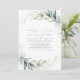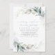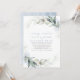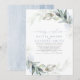 Cartes d'invitation de mariage à réception de soirée dusty blue avec calligraphie romantique et verdure de rêve