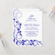 © Socialite Designs. Élégante invitation de réception de mariage avec des tourbillons et des fleurs de couleur bleu royal, prête à être personnalisée avec vos propres informations. Choisissez parmi plusieurs types de papier pour invitation. Besoin d'aide pour la personnalisation ? N'hésitez pas à me contacter avec vos besoins.