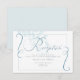 Réception de mariage | Assurez-vous que vos invités ont vos informations de réception directement à portée de main avec cette insert qui présente un feuillage bleu très pâle et une fine bordure bleue fumée avec accents de défilement et calligraphie assortie. La calligraphie de Whimsical associée à une police contemporaine minimaliste est un attrait très chic. Il fait partie d'une collection de papeterie mariage avec accessoires mariages assortis.