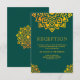 Carte de réception élégante avec une œuvre d'art géométrique de mandala élégante sur un fond sarcelle foncé.