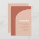 Minimaliste mais saisissant : adoptez ce design typographique élégant légèrement rétro pour votre papeterie de mariage, avec un design d'arche moderne et des couleurs terre cuite et orange brûlé. Texte, couleurs et arrière-plans entièrement personnalisables.
