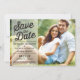 Recouvrement de script rétro | Enregistrer l'annonce de la date Photo enregistrer l'annonce de la date avec bannière transparente avec typographie rétro et un arrière - plan rayé.