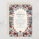 A stunning vintage-inspired Christmas design with rich red berries, midnight blue pine branches, and elegant Art Nouveau detailing. The hand-painted botanical border and warm parchment background create a timeless yet unique look — ideal for holiday gatherings, winter parties, or festive weddings with a touch of old-world charm.