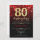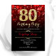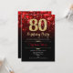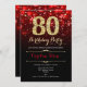 80e anniversaire invitation de fête. Design noir rouge élégant avec de l'or de parties scintillant imitation. Dispose de diamants élégants, lumières de livres et police de script. Hommes ou femmes anniversaire invitation. Idéal pour une fête d'anniversaire pour adultes. Personnalisez avec vos propres détails. Message-moi si vous avez besoin d'une personnalisation plus poussée. Invitations Zazzle imprimées ou téléchargement instantané modèle imprimable numérique.