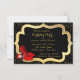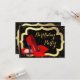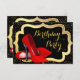 Belles chaussures de talon rouge vif, parties scintillant d'anniversaire noir et or. Cette élégante invitation de fête d'anniversaire rouge, noir et or est facilement customisée pour votre événement.