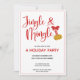 Invitation à la soirée Red Jingle & Mingle avec des cloches en jingle d'or et de jolies lettres de script. Bandes rouges et blanches sur le dos.